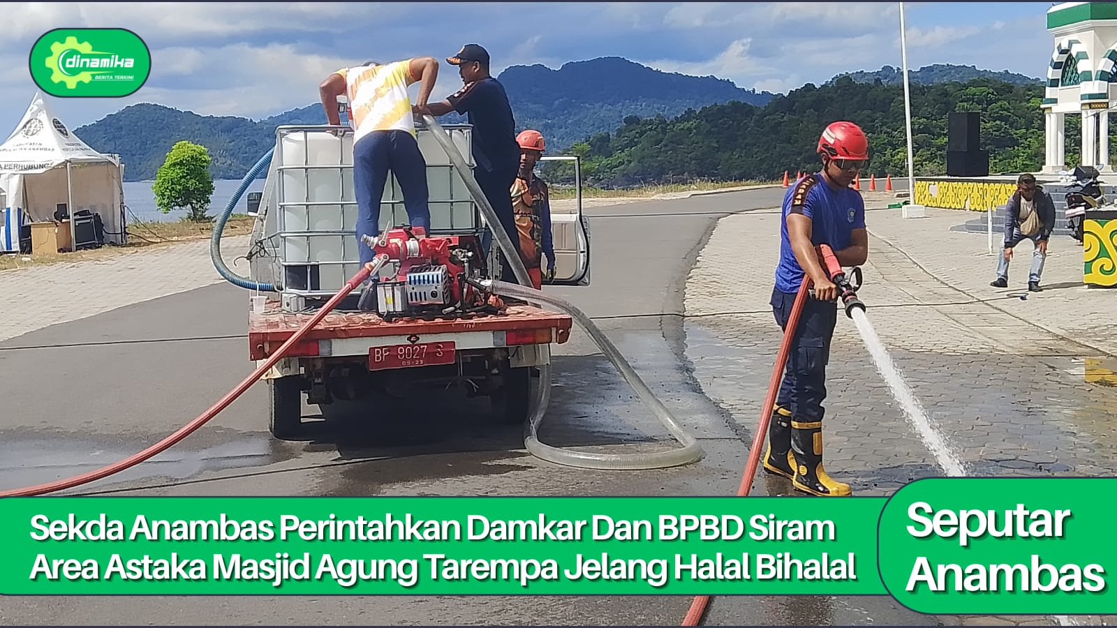 Anambas, Dinamikaglobaltimes.id – Sekretaris Daerah (Sekda) Kabupaten Kepulauan Anambas, Sahtiar, menginstruksikan Dinas Pemadam Kebakaran (Damkar) dan BPBD untuk melakukan penyiraman di area halaman masjid hingga sekitar astaka di kawasan Masjid Agung Baitul Ma’mur Tarempa, Minggu (12/4/2026).