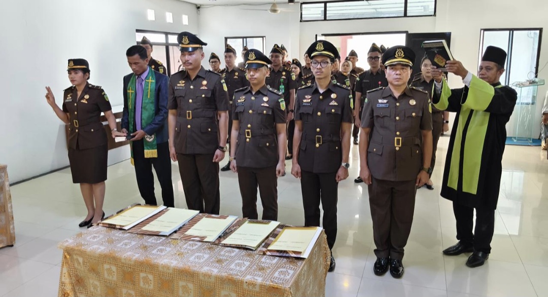 Prosesi pelantikan berlangsung khidmat, diawali dengan pembacaan Surat Keputusan Jaksa Agung RI, dilanjutkan pengambilan sumpah jabatan, penandatanganan berita acara, serta penyematan tanda jabatan.