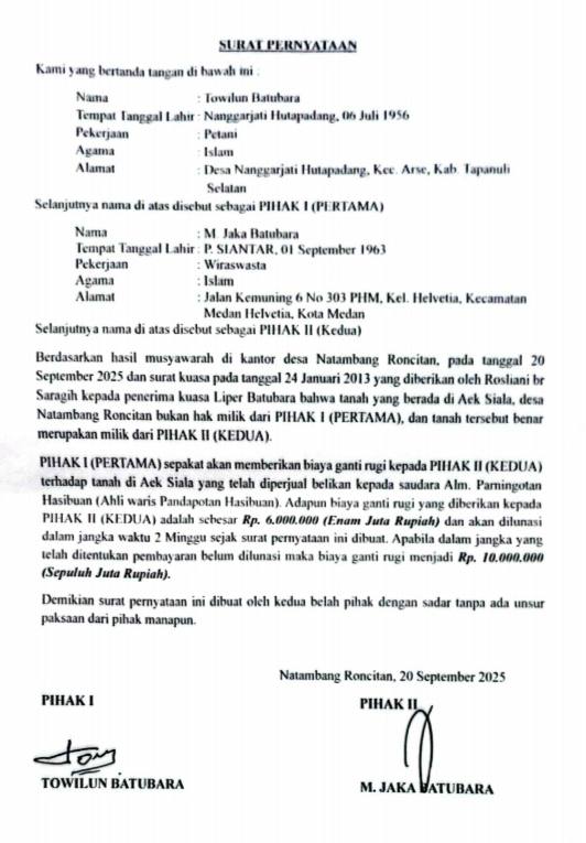 Herannya, keputusan yang tertuang dalam surat yang diterbitkan oleh pak Sekdes dan ditandatangani Kades Roncitan malam itu, tidak menyebutkan sanksi hukum, jika Towilun Batubara sama sekali tidak mengembalikannya. (Richard).