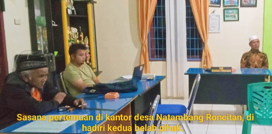 Meski sedikit molor, pertemuan pun digelar hari Sabtu tanggal 20 September 2025 pukul 20.00 wib hingga pukul 24.00 wib di kantor desa Natambang Roncitan. Suasana pertemuan saat itu tampak sedikit tegang, lantaran kedua belah pihak saling menyampaikan argumentasinya.