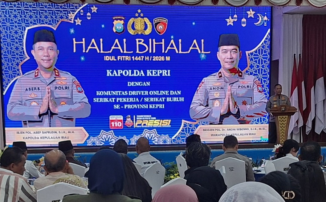 Batam – Kapolda Kepulauan Riau, Irjen Pol. Asep Safrudin, S.I.K., M.H., menggelar kegiatan Halalbihalal Idul Fitri 1447 H/2026 M bersama komunitas driver online serta serikat pekerja/serikat buruh se-Provinsi Kepulauan Riau. Kegiatan tersebut berlangsung di Gedung Lancang Kuning Mapolda Kepri, Batam.