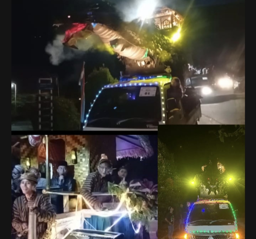 Berbagai ornamen bernuansa Islami, lampu warna-warni, hingga miniatur masjid menghiasi kendaraan roda dua maupun roda empat, menciptakan pemandangan indah dan memukau di sepanjang jalan desa.